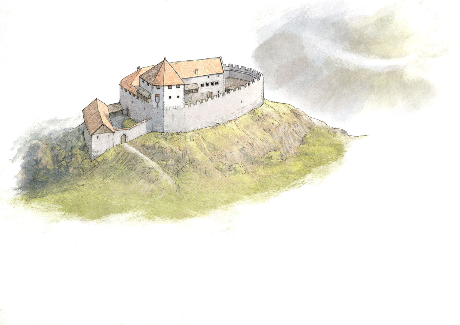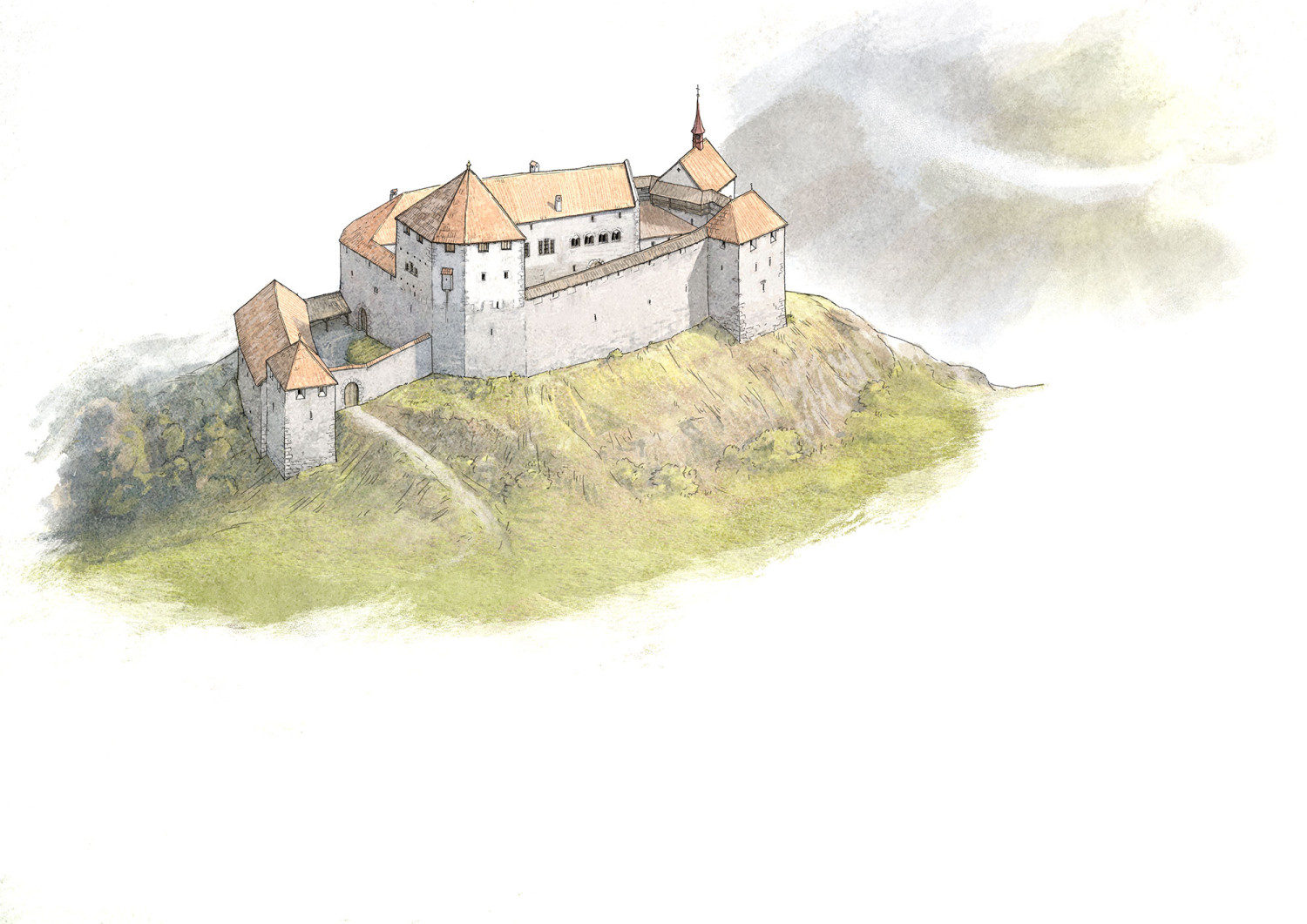 Illustrationen für den Burgenführer der Reihe "Schlösser und Wehrbauten in Mitteleuropa" Bd. 33 Schloss Ambras. Erschienen bei Schnell & Steiner 2024